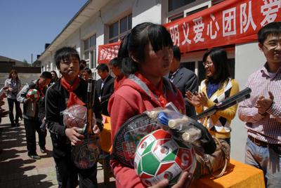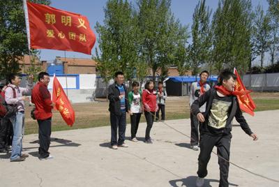 穿過重重煙霧,沿著唯一一條通向?qū)W校的泥濘公路來到三河市段甲嶺鎮(zhèn)蔣福山小學。這里交通閉塞,環(huán)境污染嚴重,經(jīng)濟落后,但是這些都沒有使這里的孩子們放棄求學的欲望,反而激發(fā)起了大家更強烈的學習熱情和改變家鄉(xiāng)的愿望??吹?50多個孩子稚嫩、純樸、可愛的笑臉,志愿者們心情非常激動,紛紛把帶來的學習用品和體育用品送到孩子們手中。隨后,大家來到課堂上,為孩子們傳授科學文化知識,回答孩子們提出的問題,鼓勵他們熱愛學習,要努力學習科學文化知識,做一個勇敢、堅強、有益于社會的人。志愿者們在表演了自編的節(jié)目后,又來到操場上,和孩子們共同做游戲,并植下了愛心樹,祝愿孩子們能在社會各界愛心人士的幫助下和關心下茁壯成長,將來成為社會主義合格的建設者和接班人。