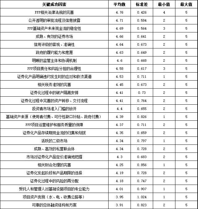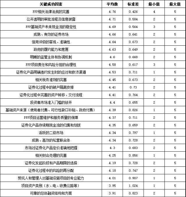 導(dǎo) 讀 2017年4月,上海證券交易所舉行了中國首批PPP項目資產(chǎn)支持證券的掛牌儀式,標(biāo)志著國家發(fā)展改革委、中國證監(jiān)會聯(lián)合推進的傳統(tǒng)基礎(chǔ)設(shè)施領(lǐng)域PPP項目資產(chǎn)證券化(ABS)產(chǎn)品正式落地。 受國家發(fā)展改革委委托,中國國際工程咨詢有限公司(中咨公司)研究中心承擔(dān)了我國首批PPP資產(chǎn)證券化項目的評估以及相關(guān)專題的研究工作,其中“政府和社會資本合作項目資產(chǎn)證券化研究”專題成果獲2018年度國家發(fā)展改革委優(yōu)秀研究成果三等獎。本文基于關(guān)鍵成功因素(CSF)分析,搭建關(guān)于PPP資產(chǎn)證券化融資的可行性評價模型,并在首批PPP資產(chǎn)證券化項目評估實踐中應(yīng)用驗證,是該專題研究的系列成果之一。由哥倫比亞大學(xué)、清華大學(xué)、中咨公司等機構(gòu)專家合作撰寫完成的相關(guān)學(xué)術(shù)論文Assessment Framework for Financing Public-Private Partnership Infrastructure Projects through Asset-Backed Securitization于2019年11月刊載于工程管理領(lǐng)域國際頂級學(xué)術(shù)期刊《Journal of Management in Engineering》(SCI檢索)第35卷第6期,本文基于原論文由伍迪、陸征翻譯整理,有刪減與修改。近期,恰逢國家發(fā)展改革委、中國證監(jiān)會正在推動基礎(chǔ)設(shè)施REITs試點相關(guān)工作,基礎(chǔ)設(shè)施REITs即以權(quán)益型ABS產(chǎn)品穿透取得底層資產(chǎn)的公募基金,希望本文研究內(nèi)容對相關(guān)從業(yè)人員及相關(guān)政策制訂提供一定參考與借鑒。 摘要:關(guān)鍵成功因素(Critical Success Factors,CSF)分析是PPP領(lǐng)域研究與實踐的一個重要分支,其重要意義在于可以為PPP從業(yè)者提供更為量化且易于操作的總體評價指標(biāo)體系。PPP資產(chǎn)證券化能否取得預(yù)期效果受多方面因素的影響,為了探索如何成功地通過PPP資產(chǎn)證券化利用資本市場進行融資,有必要對其關(guān)鍵成功因素進行深入研究。本文首先綜合使用文獻調(diào)研、案例分析、專家訪談等方法,系統(tǒng)識別PPP資產(chǎn)證券化的關(guān)鍵成功因素清單,在此基礎(chǔ)上對相關(guān)領(lǐng)域?qū)<艺归_廣泛的問卷調(diào)研;然后采用主成分分析法(Principal Component Analysis,PCA)處理調(diào)研數(shù)據(jù),分析識別主成分與各因素之間的關(guān)系,從問卷數(shù)據(jù)中挖掘出市場認(rèn)可的、對融資成功與否產(chǎn)生重要影響的幾個關(guān)鍵維度;最后基于以上結(jié)論搭建關(guān)于PPP資產(chǎn)證券化融資的可行性評價模型。 關(guān)鍵詞:政府與社會資本合作(PPP);資產(chǎn)證券化(ABS);關(guān)鍵成功因素(CSF);基礎(chǔ)設(shè)施融資;主成分分析(PCA) 1. PPP資產(chǎn)證券化關(guān)鍵成功因素的識別 1.1 基于文獻調(diào)研識別關(guān)鍵成功因素 在世界范圍內(nèi)PPP與資產(chǎn)證券化的結(jié)合仍屬新生事物,2016年底中國發(fā)布專項政策推廣相關(guān)工作,國際上針對這一融資創(chuàng)新的理論研究十分有限。因此,本文對PPP關(guān)鍵成功因素、基礎(chǔ)設(shè)施融資、資產(chǎn)證券化等相關(guān)領(lǐng)域分別進行文獻調(diào)研,從中篩選并形成適合作為PPP資產(chǎn)證券化關(guān)鍵成功因素的初步清單,如表1所示。 表1 基于文獻調(diào)研識別的關(guān)鍵成功因素 1.2 基于案例分析識別關(guān)鍵成功因素 成功案例經(jīng)驗歸納。以世界范圍內(nèi)成功PPP項目為分析對象,重點從世界銀行發(fā)布的引入私人資本的優(yōu)質(zhì)PPP項目中篩選案例,歸納成功經(jīng)驗,從而完善PPP項目資產(chǎn)證券化關(guān)鍵成功因素。案例分析的研究過程可以應(yīng)用比較分析法來突顯這些成功項目的相似點,而這些相似點則可以作為這些成功項目的重要特征而添加到成功因素清單中。在與世界銀行融資方面相關(guān)專家訪談的基礎(chǔ)上,本文選定了來自6個國家的不同成功案例來進行比較分析。通過成功案例經(jīng)驗歸納發(fā)現(xiàn):政策支持、成熟有效的資本市場、采購過程的透明度、完善的法律框架、合理的項目審批流程、清晰的監(jiān)管機構(gòu)與公共部門實施機構(gòu)、合理的風(fēng)險分擔(dān)機制、實力強大的聯(lián)合體、清晰的職能與責(zé)任劃分、社會資本的融資能力、項目收費的合理定價、運營階段可靠的服務(wù)等是促成PPP項目成功的重要因素。 失敗案例教訓(xùn)總結(jié)。對失敗案例教訓(xùn)的總結(jié)能夠更加全面地了解PPP資產(chǎn)證券化融資的關(guān)鍵節(jié)點和成功的必要條件。本文選擇的失敗案例包括發(fā)生違約或信用評級降低等事件的基礎(chǔ)設(shè)施收費收益權(quán)類資產(chǎn)證券化案例,包括某大橋通行費收入收益權(quán)專項資產(chǎn)管理計劃(違約)、某熱電電力上網(wǎng)收費權(quán)債權(quán)和供用熱合同債權(quán)資產(chǎn)支持專項計劃(降級)等。通過對失敗的基礎(chǔ)設(shè)施資產(chǎn)證券化案例教訓(xùn)總結(jié)發(fā)現(xiàn):缺乏差額補償資金來源、提供擔(dān)保的機構(gòu)與被擔(dān)保的項目具有強關(guān)聯(lián)性、產(chǎn)業(yè)政策的變化與市場的不確定性、現(xiàn)金流的歸集與分配結(jié)構(gòu)不清晰、違約事件發(fā)生后缺乏解決方案等是導(dǎo)致失敗的重要因素。 1.3 