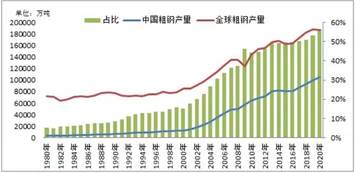 高 質(zhì) 量 發(fā) 展 是 關(guān) 鍵 ——鋼鐵工業(yè)與經(jīng)濟(jì)發(fā)展的幾點(diǎn)思考 陳子琦 一、對鋼鐵工業(yè)的基本認(rèn)識(shí) 從世界范圍看,鋼鐵行業(yè)是僅次于石油天然氣的第二大行業(yè),全球鋼鐵行業(yè)產(chǎn)值約一萬多億美元。中國擁有世界上唯一門類齊全、結(jié)構(gòu)完整的鋼鐵工業(yè)體系,擁有采礦、選礦、燒結(jié)(球團(tuán))、焦化、煉鐵、煉鋼、軋鋼、金屬制品、炭素、鐵合金輔料等全部流程,以及勘探、設(shè)計(jì)、施工、科研等機(jī)構(gòu)。鋼鐵工業(yè)是國民經(jīng)濟(jì)重要基礎(chǔ)產(chǎn)業(yè),為經(jīng)濟(jì)社會(huì)發(fā)展和國防建設(shè)做出了重要貢獻(xiàn)。同時(shí),也是工業(yè)門類中的大行業(yè),具有資源和資本密集、產(chǎn)業(yè)關(guān)聯(lián)度高、經(jīng)濟(jì)社會(huì)影響大等特點(diǎn)。2010年前,我國鋼鐵工業(yè)增加值約占全國GDP的4%,產(chǎn)值約占全國工業(yè)的9%,在全國工業(yè)排序中僅次于交通運(yùn)輸設(shè)備制造業(yè)和化學(xué)工業(yè),近年來排序略有下降,列第四位。國家統(tǒng)計(jì)局?jǐn)?shù)據(jù)顯示,2020年我國粗鋼產(chǎn)量10.65億噸,這在人類歷史上是空前的,占世界粗鋼產(chǎn)量的56.7%。 從鋼鐵工業(yè)基本面看,我國是世界鋼鐵大國,距鋼鐵強(qiáng)國并不遙遠(yuǎn),是全國工業(yè)中少數(shù)接近國際先進(jìn)水平的行業(yè)。我國有10億噸級的粗鋼消費(fèi)量,鋼鐵工業(yè)有大量先進(jìn)的鋼鐵生產(chǎn)裝備,重點(diǎn)企業(yè)裝備達(dá)到國際先進(jìn)水平。沿海布局取得明顯進(jìn)展,擁有世界上30多年來新建的沿海千萬噸級鋼鐵大廠。鋼鐵工業(yè)技術(shù)進(jìn)步持續(xù)推進(jìn),技術(shù)經(jīng)濟(jì)指標(biāo)得到改善,產(chǎn)品檔次質(zhì)量逐步提高,支撐了我國經(jīng)濟(jì)社會(huì)發(fā)展,部分鋼鐵產(chǎn)品具有較強(qiáng)國際競爭力。此外,在節(jié)能減排、環(huán)境保護(hù)等綠色發(fā)展等方面也取得較大進(jìn)展。 二、關(guān)于鋼鐵工業(yè)與經(jīng)濟(jì)發(fā)展的幾點(diǎn)思考 (一)鋼鐵工業(yè)滿足了國民經(jīng)濟(jì)和國防建設(shè)需要 2020年,我國消費(fèi)鋼材高達(dá)10億噸級(折粗鋼),約占全世界需求量的56%,其中絕大部分為自主供應(yīng),國內(nèi)鋼材自給率達(dá)105.7%,國產(chǎn)鋼材市場占有率達(dá)98.6%,進(jìn)口鋼材市場占有率不足2%。同時(shí),國產(chǎn)鋼材品種質(zhì)量明顯改善,有力支持了高速鐵路、南水北調(diào)、西氣東輸、奧運(yùn)工程等國家重大工程和重點(diǎn)項(xiàng)目,基本滿足了建筑業(yè)、制造業(yè)、新興產(chǎn)業(yè)發(fā)展以及國防建設(shè)需要。應(yīng)該看到,我國這么大的鋼材需求量主要依靠進(jìn)口是絕對不可能的,沒有哪個(gè)國家能夠供應(yīng)。 圖1 1980-2020年中國與世界粗鋼產(chǎn)量及其占比 (二)紅色是中國鋼鐵發(fā)展的主旋律 鋼鐵,兵之利器,國之脊梁。鋼鐵強(qiáng),則國強(qiáng)。鋼鐵大國和強(qiáng)國,是中國共產(chǎn)黨的領(lǐng)袖們從戰(zhàn)火紛飛的硝煙中一路走來的夢想。共和國誕生之初,重中之重是恢復(fù)鞍鋼,支撐脆弱的國民經(jīng)濟(jì)發(fā)展,支持抗美援朝戰(zhàn)爭。上世紀(jì)50年代末,一場轟轟烈烈的以“超英趕美”為目標(biāo)的“大煉鋼鐵運(yùn)動(dòng)”,在當(dāng)今看來,雖激進(jìn)且不甚科學(xué),但卻從另一個(gè)方面印證了舉國上下發(fā)展鋼鐵工業(yè)、增強(qiáng)綜合國力的堅(jiān)強(qiáng)決心和曲折不易。改革開放以來,在黨的領(lǐng)導(dǎo)下,鋼鐵工業(yè)發(fā)奮圖強(qiáng),通過寶鋼建設(shè)促進(jìn)了鋼鐵技術(shù)長足進(jìn)步,一大批現(xiàn)代化的高爐、轉(zhuǎn)爐、連軋機(jī)等先進(jìn)裝備如雨后春筍般涌現(xiàn),鋼鐵工業(yè)得到了飛速發(fā)展,成為世界第一產(chǎn)鋼大國,正在邁向世界鋼鐵強(qiáng)國。鋼鐵工業(yè)成為支撐國民經(jīng)濟(jì)發(fā)展和制造大國地位的重要基礎(chǔ)。 紅色是鋼鐵工業(yè)發(fā)展的主旋律,火紅的年代見證了鋼鐵的報(bào)國初心使命。長期以來,鋼鐵工業(yè)受到黨和國家領(lǐng)導(dǎo)人的高度關(guān)注。毛主席提出了“鞍鋼憲法”“鋼鐵元帥”“以鋼為綱”。鄧小平同志提出了“歷史將證明,建設(shè)寶鋼是正確的”,今天寶鋼已成為我國乃至世界鋼鐵龍頭企業(yè),驗(yàn)證了小平同志預(yù)言的正確性。習(xí)近平總書記多次視察馬鋼、太鋼等鋼鐵企業(yè)。鋼鐵工業(yè)產(chǎn)生了無數(shù)英模,孟泰、雷鋒、馬萬水、郭明義是杰出代表。從紅色鋼鐵企業(yè)看,前身是八路軍太行山兵工廠的故縣鐵廠、上世紀(jì)50年代恢復(fù)建設(shè)的鞍鋼、50年代后期建設(shè)的包鋼、70年代建設(shè)的攀鋼、80年代建設(shè)的寶鋼,這些鋼鐵企業(yè)的發(fā)展壯大,與黨的建設(shè)、共和國的建設(shè)密不可分,反映出黨在鋼鐵工業(yè)發(fā)展中發(fā)揮了重要基礎(chǔ)性和決定性作用。 鞍鋼集團(tuán)博物館正廳浮雕墻 鋼鐵工業(yè)創(chuàng)造了諸多新興城市,因鋼鐵廠建設(shè)而產(chǎn)生和繁榮的城市有馬鞍山、包頭、嘉峪關(guān)和攀枝花等。 抗美援朝期間,中國“氣多鋼少”,美國“氣少鋼多”。1950年,中國鋼產(chǎn)量僅61萬噸,美國鋼產(chǎ