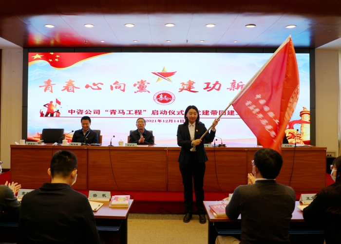 2021年12月14日,中咨公司召開首期“青馬工程”啟動(dòng)儀式暨黨建帶團(tuán)建工作推進(jìn)會(huì)。公司黨委書記、董事長(zhǎng)、總經(jīng)理茍護(hù)生為學(xué)員講授開班“第一課”,黨委副書記、董事牛向春作開班動(dòng)員講話。會(huì)議由團(tuán)委書記、業(yè)務(wù)發(fā)展部主任陳佳鵬主持,人力資源部主任尤伯軍作為“青馬”導(dǎo)師代表作表態(tài)發(fā)言,黨群工作部主任易桂安向?qū)W員代表授旗。首期“青馬工程”學(xué)員、共青團(tuán)干部50余人參加會(huì)議。