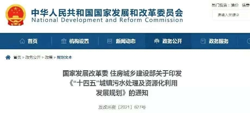 ——《“十四五”城鎮(zhèn)污水處理及資源化利用發(fā)展規(guī)劃》政策解讀