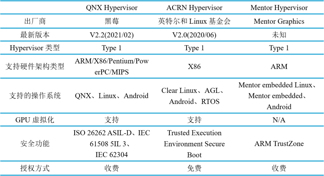 車用操作系統(tǒng)技術(shù)現(xiàn)狀及發(fā)展趨勢 汪志鴻 馬天澤 陳炳全 摘要:隨著汽車向電動化、智能化發(fā)展,其電子電氣架構(gòu)正從傳統(tǒng)分布式架構(gòu)向域集中式架構(gòu)以及中央計算架構(gòu)轉(zhuǎn)變,汽車軟件由面向信號的架構(gòu)朝面向服務(wù)的軟件架構(gòu)升級。車用操作系統(tǒng)是汽車軟件生態(tài)的重要基礎(chǔ),加強車用操作系統(tǒng)技術(shù)研究對保障我國智能汽車產(chǎn)業(yè)安全具有重要意義?;诖吮尘埃疚膶囉貌僮飨到y(tǒng)技術(shù)架構(gòu)、典型產(chǎn)品以及發(fā)展現(xiàn)狀進行了梳理,對比了國內(nèi)外主流虛擬化技術(shù)產(chǎn)品、內(nèi)核、中間件,提出了車用操作系統(tǒng)未來發(fā)展趨勢。 關(guān)鍵詞:車用操作系統(tǒng);內(nèi)核;技術(shù)現(xiàn)狀;發(fā)展趨勢 一、車用操作系統(tǒng)架構(gòu)概述 車用操作系統(tǒng)與芯片、傳感器等物理硬件共同組成車載基礎(chǔ)軟硬件平臺,是實現(xiàn)智能駕駛、智能座艙、安全車控功能的基礎(chǔ)。按上述功能劃分,車載基礎(chǔ)軟件平臺可以分為智能駕駛、智能座艙、安全車控等三個軟件平臺,分別由智能駕駛操作系統(tǒng)、智能座艙操作系統(tǒng)、安全車控操作系統(tǒng)以及相應(yīng)的配套工具鏈組成。 智能駕駛和智能座艙操作系統(tǒng)按架構(gòu)自下而上均可分為系統(tǒng)軟件和功能軟件。其中,系統(tǒng)軟件可以分為硬件抽象層、內(nèi)核和中間件;功能軟件可以分為AI和視覺模塊、傳感器模塊、聯(lián)網(wǎng)模塊、云控模塊、自動駕駛通用框架模塊等。安全車控操作系統(tǒng)是指面向傳統(tǒng)車輛控制,基于OSEK OS(汽車電子開放式系統(tǒng)及接口)和AUTOSAR CP(傳統(tǒng)汽車開放架構(gòu)平臺)構(gòu)建,實現(xiàn)車身、動力、底盤系統(tǒng)等控制功能。車用操作系統(tǒng)架構(gòu)如圖1所示。 圖1 車用操作系統(tǒng)架構(gòu) 車用操作系統(tǒng)中的系統(tǒng)軟件不僅為上層應(yīng)用以及功能的實現(xiàn)提供了高效、穩(wěn)定的環(huán)境支持,也是各類應(yīng)用調(diào)度底層硬件資源的“橋梁”,在智能汽車整體軟件架構(gòu)中處于基石位置。本文將重點介紹系統(tǒng)軟件。 二、系統(tǒng)軟件技術(shù)發(fā)展現(xiàn)狀 系統(tǒng)軟件是針對汽車場景定制的復(fù)雜大規(guī)模嵌入式系統(tǒng)運行環(huán)境,主要包含硬件抽象層、內(nèi)核、中間件三層。 (一)硬件抽象層 1.概念 硬件抽象層是內(nèi)核與硬件之間的接口層,目的是為操作系統(tǒng)提供虛擬硬件平臺,使操作系統(tǒng)與硬件解耦,實現(xiàn)多硬件平臺間的移植。虛擬硬件平臺由虛擬機(簡稱VM)和虛擬機監(jiān)視器(簡稱Hypervisor)構(gòu)成,操作系統(tǒng)在VM上運行,并通過Hypervisor進行調(diào)度。 虛擬機是指通過軟件模擬完整的硬件系統(tǒng)功能,實現(xiàn)操作系統(tǒng)運行在一個完全隔離環(huán)境中。在物理硬件中能夠完成的工作都能夠在虛擬機中實現(xiàn)。 Hypervisor是指一種運行在物理硬件和虛擬機之間的中間層軟件,可以允許多個虛擬機和應(yīng)用共享一套基礎(chǔ)物理硬件,用于協(xié)調(diào)訪問物理設(shè)備和虛擬機,所以又稱為虛擬機監(jiān)視器。Hypervisor主要有兩種,Type 1(裸機類型)和Type 2(寄居類型),Type 1類型的Hypervisor直接運行在物理硬件之上,可直接訪問物理硬件并管理所有硬件資源,在延時、安全性和效率上更勝一籌,但此類型Hypervisor需要硬件支持,移植難度大,開發(fā)成本也較高;Type 2類型的Hypervisor運行在某個操作系統(tǒng)之上,通過操作系統(tǒng)訪問物理硬件,因此在延時方面具有不可避免的劣勢,并且底層操作系統(tǒng)的任何問題都將危及其上的虛擬機,因此安全性方面相對較弱,但是移植難度小,開發(fā)成本低。Type 1和Type 2架構(gòu)如圖2所示。 2.典型虛擬監(jiān)視器 Hypervisor目前主要應(yīng)用于智能座艙操作系統(tǒng),未來將逐步向智能駕駛操作系統(tǒng)擴展。在智能座艙操作系統(tǒng)中,娛樂和智能交互等模塊與儀表顯示等模塊對實時性、安全性、穩(wěn)定性要求不同,需要在一顆SOC芯片上運行兩種或多種操作系統(tǒng)。因此,目前主流Hypervisor方案選擇Type 1型,保障操作系統(tǒng)之間互不干擾,提升操作系統(tǒng)安全性。典型虛擬監(jiān)視器包括QNX Hypervisor、ACRN Hypervisor、Mentor Hypervisor等,均為基于Type 1型的虛擬管理程序。各類Hypervisor對比如表1所示。 3.國內(nèi)外虛擬監(jiān)視器市場格局 近幾年涌入車載Hypervisor領(lǐng)域的企業(yè)非常多,以國外企業(yè)為主,主要產(chǎn)品包括加拿大黑莓公司的QNX Hypervisor、英國XenSource公司的Xen Hypervisor、日本松下旗下子公司的OpenSynergy、Linux基金會的ACRN Hypervisor、美國Mentor Graphics公司Mentor Hypervisor等。其中,QNX Hypervisor是目前唯一應(yīng)用到量產(chǎn)車型且功能安全等級達到ISO 26262 ASIL-D級的虛擬抽象層產(chǎn)品,并支持高通、恩智浦、德州儀器等廠商的芯片。同時,黑莓與博世等多家Tier 1(一級汽車供應(yīng)商)廠商建立了合作伙伴關(guān)系,推廣其Hypervisor產(chǎn)品。此外,高通在Snapdragon Ride自動駕駛軟件堆棧中也選擇了QNX Hypervisor 2.0版本產(chǎn)品。 國內(nèi)Hypervisor發(fā)展相對落后,2017年中科創(chuàng)達、誠邁科技入選黑莓VAI計劃,作為合作伙