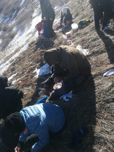 中咨海外公司咨詢團隊在海坨山現(xiàn)場踏勘時冒著風雪就餐