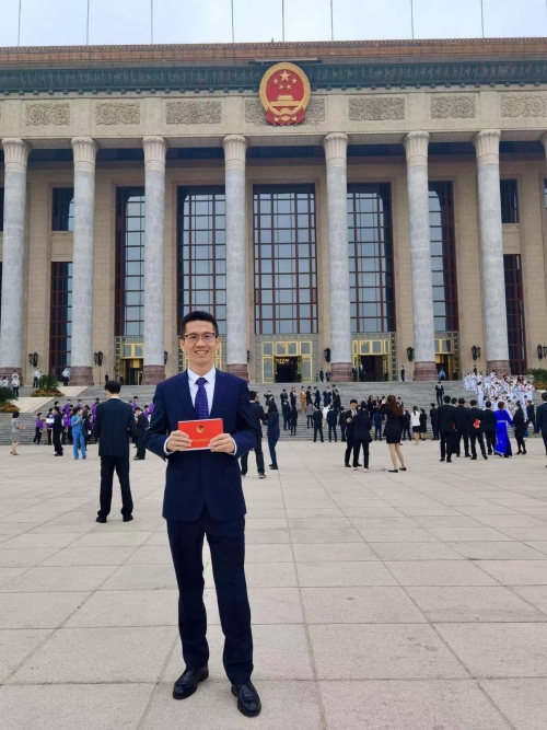 慶祝大會結(jié)束后在人民大會堂門口留影