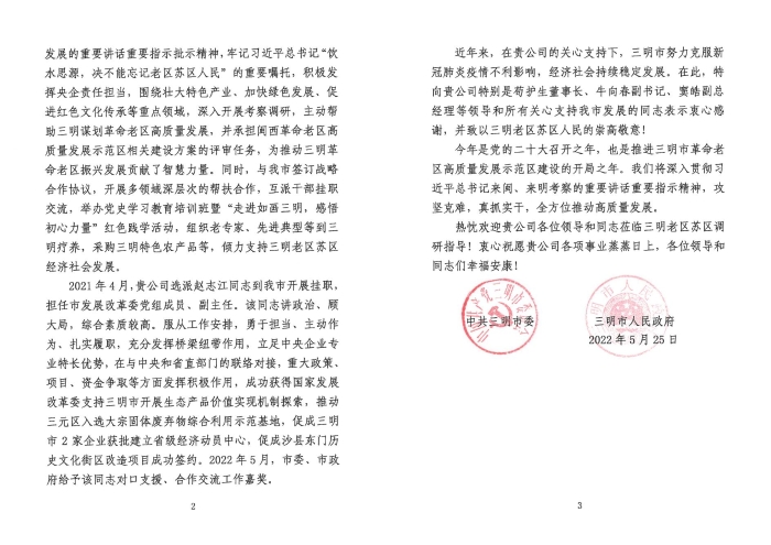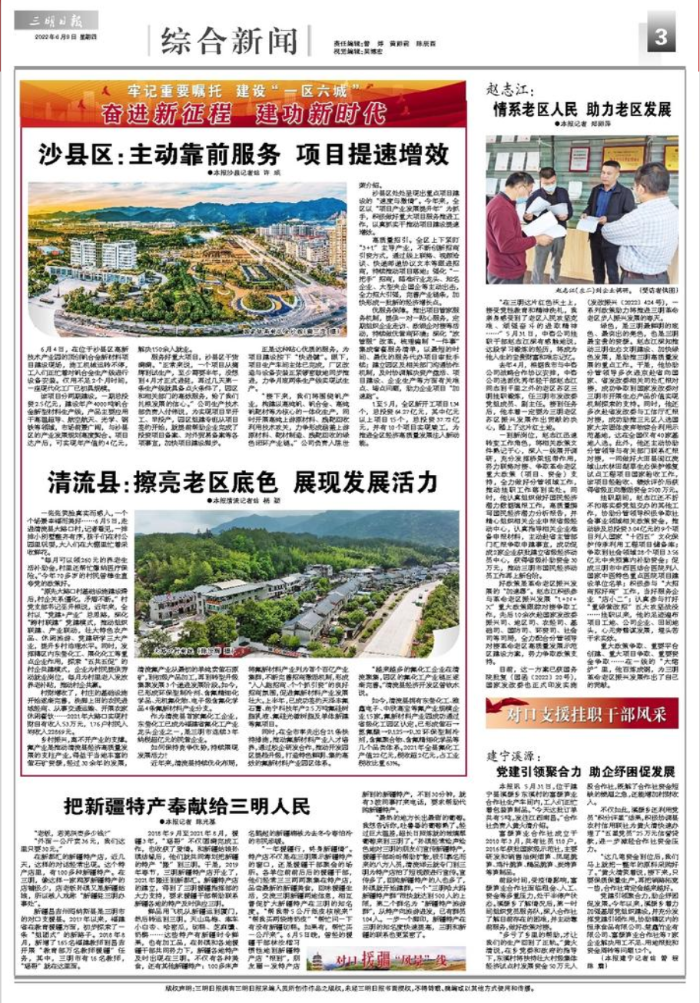 這里有鮮美可口的沙縣小吃 這里有服裝精致考究的梅林戲 這里曾經(jīng)留下習(xí)近平總書記12次到訪的足跡 這里是:福建三明 習(xí)近平總書記長期關(guān)心三明發(fā)展、情系老區(qū)人民,在福建工作期間,先后11次到三明調(diào)研考察,作出了“青山綠水是無價之寶”“畫好山水畫”“不要忘記老區(qū)”等一系列重要指示。2021年3月,習(xí)近平總書記再次親臨三明考察指導(dǎo),對三明老區(qū)蘇區(qū)發(fā)展特別是醫(yī)改、林改、鄉(xiāng)村振興、沙縣小吃等作出新的重要囑托。 中咨公司作為咨詢服務(wù)“國家隊(duì)”,深入貫徹落實(shí)習(xí)近平總書記重要指示精神,承擔(dān)了全國革命老區(qū)振興發(fā)展的一系列咨詢服務(wù)任務(wù)。在評估工作中,中咨公司深入調(diào)研三明市特色亮點(diǎn),報(bào)送關(guān)于三明市統(tǒng)籌推進(jìn)“五位一體”總體布局和協(xié)調(diào)推進(jìn)“四個全面”戰(zhàn)略布局的調(diào)研報(bào)告。2020年公司領(lǐng)導(dǎo)牽頭,組織開展調(diào)查研究,形成上報(bào)政策研究報(bào)告,“三明實(shí)踐”被中宣部樹為重大典型。 中咨公司與三明“結(jié)緣”已深,去年開始互派優(yōu)秀年輕干部掛職交流。2021年4月,趙志江作為中咨公司選派的優(yōu)秀年輕干部赴三明市掛職鍛煉,任三明市發(fā)改委黨組成員、副主任。掛職期間,趙志江始終以合格共產(chǎn)黨員的標(biāo)準(zhǔn)要求自己,積極發(fā)揮模范帶頭作用,從央企到地方,迅速轉(zhuǎn)變工作角色,沉下心撲下身,積極謀劃,履職盡責(zé),勇于擔(dān)當(dāng),高標(biāo)準(zhǔn)、高質(zhì)量完成掛職各項(xiàng)任務(wù)。 三明日報(bào)報(bào)道趙志江事跡 激活紅色資源 深挖革命老區(qū)示范區(qū)新機(jī)遇 習(xí)近平總書記指出,福建是革命老區(qū),黨史事件多、紅色資源多、革命先輩多,開展黨史學(xué)習(xí)教育具有獨(dú)特優(yōu)勢。三明市既是革命老區(qū),也是全國率先開展精神文明建設(shè)的城市之一。如何發(fā)揮自身戰(zhàn)略咨詢專業(yè)優(yōu)勢,幫助革命老區(qū)換新顏,趙志江先從三明市參與革命老區(qū)高質(zhì)量發(fā)展示范區(qū)建設(shè)入手。 趙志江積極參與革命老區(qū)振興發(fā)展“1+N+X”重大政策跟蹤對接,先后10余次赴國家發(fā)改委振興司、地區(qū)司等7個司局,對接閩西革命老區(qū)高質(zhì)量發(fā)展示范區(qū)建設(shè)方案,爭取相關(guān)事項(xiàng)。目前該方案已獲國務(wù)院批復(fù)(國函﹝2022﹞20號),國家發(fā)改委正式印發(fā)實(shí)施(發(fā)改振興﹝2022﹞424號)。 為持續(xù)支持三明老區(qū)蘇區(qū)經(jīng)濟(jì)社會發(fā)展,開展多領(lǐng)域深層次幫扶合作,三明市發(fā)改委、林業(yè)局、交通局三位同志到中咨公司相關(guān)部門掛職交流,先后承擔(dān)三元區(qū)大宗固廢綜合利用產(chǎn)業(yè)發(fā)展研究、三明市生態(tài)產(chǎn)品價值實(shí)現(xiàn)機(jī)制研究等課題。 中咨公司與三明市合作,成功舉辦黨史學(xué)習(xí)教育培訓(xùn)班暨“走進(jìn)如畫三明,感悟初心力量”紅色踐學(xué)活動,組織老專家、先進(jìn)典型等赴三明療養(yǎng),采購三明特色農(nóng)產(chǎn)品,為三明革命老區(qū)高質(zhì)量發(fā)展注入源源動力。 中咨公司在三明舉辦黨史學(xué)習(xí)教育專題培訓(xùn)班開班現(xiàn)場 繪就生態(tài)畫卷 賦能三明綠色發(fā)展新藍(lán)圖 習(xí)近平總書記在武夷山國家公園智慧管理中心考察時指出,要堅(jiān)持生態(tài)保護(hù)第一,統(tǒng)籌保護(hù)和發(fā)展,有序推進(jìn)生態(tài)移民,適度發(fā)展生態(tài)旅游,實(shí)現(xiàn)生態(tài)保護(hù)、綠色發(fā)展、民生改善相統(tǒng)一。 趙志江多次赴省發(fā)改委與工信廳匯報(bào)對接,助推三元區(qū)成功入選大宗固體廢棄物綜合利用示范基地,全國僅有40家。充分利用在閩工作期間奠定的良好基礎(chǔ),主動協(xié)助市發(fā)改委分管領(lǐng)導(dǎo)與有關(guān)部門匯報(bào),做好大田縣閩江流域山水林田湖草生態(tài)保護(hù)修復(fù)試點(diǎn)工程項(xiàng)目驗(yàn)收。該項(xiàng)目獲得省級正向激勵資金2500萬元。 此外,趙志江還積極做好體制機(jī)制創(chuàng)新案例編輯報(bào)送工作,案例“將樂縣打造‘綠水青山’贏得‘金山銀山’”獲得省機(jī)關(guān)黨工委組織的改革創(chuàng)新評選活動“優(yōu)秀獎”。 發(fā)揮智庫優(yōu)勢 探索老區(qū)高質(zhì)量發(fā)展新路徑 在三明考察期間,習(xí)近平總書記詳細(xì)了解了沙縣小吃發(fā)展現(xiàn)狀和前景。他指出,鄉(xiāng)村要振興,因地制宜選擇富民產(chǎn)業(yè)是關(guān)鍵。 趙志江與專家團(tuán)隊(duì)圍繞三明市產(chǎn)業(yè)升級、鄉(xiāng)村振興、綠色發(fā)展、民生提升等重點(diǎn)領(lǐng)域深入調(diào)研,謀劃沙縣小吃產(chǎn)業(yè)、綠色經(jīng)濟(jì)、氟新材料產(chǎn)業(yè)等重點(diǎn)專項(xiàng)發(fā)展思路,承擔(dān)閩西革命老區(qū)高質(zhì)量發(fā)展示范區(qū)相關(guān)建設(shè)方案評審任務(wù),以及包括三明在內(nèi)的革命老區(qū)重點(diǎn)城市與發(fā)達(dá)地區(qū)部分城市對口合作方案的論證工作,為三明革命老區(qū)振興發(fā)展貢獻(xiàn)了“中咨方案”。 在招商方面, 趙志江積極投身“