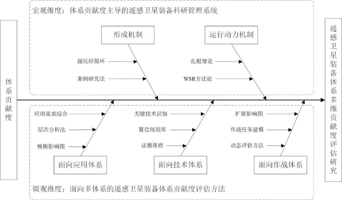 (三)總體來看,當前研究成果多從工程角度探討評估方法的優(yōu)化與創(chuàng)新,而探索構(gòu)建一種體系貢獻度主導的遙感衛(wèi)星裝備科研管理系統(tǒng),可有效將武器裝備體系貢獻度評估拓展到管理科學研究領(lǐng)域,以學科交叉融合推進武器裝備建設(shè)創(chuàng)新發(fā)展。