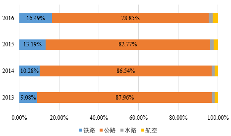 圖2  近六年旅客運(yùn)輸結(jié)構(gòu)變化情況