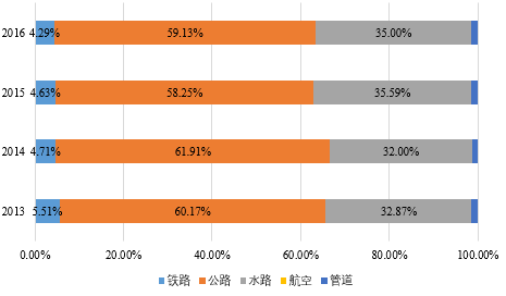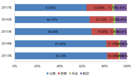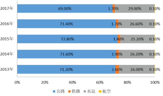 圖1  近六年貨物運(yùn)輸量占比變化情況