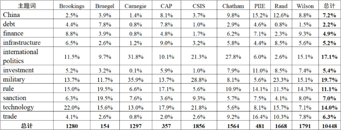 美歐高端智庫重點(diǎn)關(guān)注領(lǐng)域
