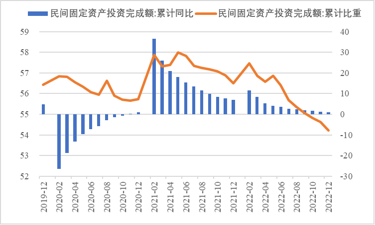 2022年,面對復雜嚴峻的國際環(huán)境和國內疫情挑戰(zhàn),我國投資整體表現較強韌性,對穩(wěn)定經濟基本盤發(fā)揮了壓艙石作用?;A設施和部分制造業(yè)成為穩(wěn)投資的重點領域,中西部地區(qū)投資增長動能強勁。同時,制造業(yè)承壓加劇、房地產投資下行、地方債高壓、社融需求走弱等突出問題制約投資持續(xù)穩(wěn)定增長,穩(wěn)投資壓力仍然較大。做好2023年投資促進工作,關鍵是把擴大有效投資同優(yōu)化供給結構有機結合起來,持續(xù)擴大高技術產業(yè)投資,多舉措穩(wěn)定房地產投資,更好發(fā)揮政府投資的引導作用,充分釋放社會投資需求潛能。 一、固定資產投資整體運行情況 (一)整體投資韌性超出預期,民間投資呈下行趨勢 2022年1—12月,我國固定資產投資(不含農戶,下同)572138億元,同比增長5.1%。一季度投資增速達到9.3%的年內高點,上半年、前三季度分別降至6.1%、5.9%,年初投資增速較高的重要原因是2022年專項債部分限額提前下達等系列政策發(fā)揮效果,之后受國外地緣政治沖突、國內疫情多點散發(fā)等因素影響,投資增速有所下降,但降幅逐季收窄。一季度、上半年、前三季度、全年固定資產投資增速分別較同期國內生產總值增速高了4.5個、3.6個、2.9個和2.1個百分點,投資成為當前穩(wěn)定宏觀經濟大盤的關鍵力量。 圖1 全國固定資產投資增速 (累計同比,%) 數據來源:國家統計局 1—12月,我國固定資產投資三年平均增速為4.3%,低于2019年同期1.1個百分點,全面恢復到疫情前水平仍需一定時間。尤其是民間投資受疫情沖擊較為嚴重,復蘇難度較大。一季度、上半年、前三季度、全年民間投資分別同比增長8.4%、3.5%、2%、0.9%,低于整體投資增速0.9個、2.6個、3.9個、4.2個百分點,與整體投資增速的差距逐季拉大。從占比看,截至12月底民間投資累計占固定資產投資的比重已降至54.2%,低于2019年同期2.2個百分點。 圖2 民間投資增速及占比(%) 數據來源:國家統計局,Wind數據庫 (二)基礎設施、制造業(yè)投資支撐作用明顯,房地產市場持續(xù)低迷 制造業(yè)投資在外需帶動和政策支撐下展現較強韌性,2022年1—12月制造業(yè)投資同比增長9.1%,比整體投資高4個百分點。在內需受疫情影響明顯收縮的情況下,制造業(yè)投資超預期增長很大程度上得益于外需對出口的拉動。我國全年貨物出口額累計同比增長10.5%,裝備制造、消費品制造等領域海外訂單持續(xù)旺盛,機電產品占進出口總額的49.1%,汽車出口大幅增長82.2%。技改投資繼續(xù)發(fā)揮對制造業(yè)投資的拉動作用。1—11月,制造業(yè)企業(yè)技改投資同比增長9.1%,占全部制造業(yè)投資的比重達40.9%。 基礎設施投資在增加政策性開發(fā)性金融工具額度、用好專項債等融資支持政策以及各地區(qū)各部門積極貫徹落實穩(wěn)增長系列政策推動下,連續(xù)8個月回升,1—12月同比增長9.4%,高于全部投資增速4.3個百分點。其中,水利管理業(yè)投資和公共設施管理業(yè)投資分別大幅增長13.6%、10.1%。 表1 1-12月我國各行業(yè)固定資產投資情況 2022年受需求走弱影響,房地產開發(fā)投資增速持續(xù)放緩,一季度僅同比增長0.7%,二季度開始滑落至負增長區(qū)間。1—12月我國房地產開發(fā)投資同比下降10%,降幅較前三季度、上半年分別擴大2個、4.6個百分點,跌幅持續(xù)加深,拖累固定資產投資整體增長。房企土地購置費、施工面積、新開工面積等指標均出現持續(xù)大幅下降。1—12月,房地產開發(fā)景氣指數均位于100以下,且自2月以來持續(xù)走低。 圖3 三大領域固定資產投資增速 (累計同比,%) 數據來源:國家統計局,Wind數據庫 高技術產業(yè)投資引領作用持續(xù)增強。在投資整體下行壓力加大的情況下,高技術產業(yè)投資逆勢而上,穩(wěn)投資引領作用持續(xù)顯現。2022年高技術產業(yè)投資同比增長18.9%,比全部投資增速高13.8個百分點。分類別看,高技術制造業(yè)投資同比增長22.2%,比制造業(yè)整體投資高了13.1個百分點,其中電子及通信設備制造業(yè)投資增長27.2%,醫(yī)療儀器設備及儀器儀表制造業(yè)投資增長27.6%,電子、醫(yī)藥制造業(yè)投資大幅增加;高技術服務業(yè)投資同比增長12.1%,其中科技成果轉化服務業(yè)投資增長26.4%,研發(fā)設計服務業(yè)投資增長19.8%,企業(yè)研發(fā)投入顯著加大。 圖4 高技術產業(yè)投資增速對比整體投資增速 (累計同比,%) 數據來源:國家統計局,Wind數據庫 (三)中西部地區(qū)投資增長動力較強,東北地區(qū)增速止跌回升 2022年1—12月,東部地區(qū)投資同比增長3.6%,較前三季度、上半年、一季度分別回落0.7個、0.9個、5.9個百分點;中部地區(qū)投資增長8.9%,較前三季度、上半年、一季度分別回落1.1個、1.8個、5.5個百分點;西部地區(qū)投資增長4.7%,較前三季度、上半年、一季度分別回落2個、3.3個、6.6個百分點;東北地區(qū)投資增長1.2%,較前三季度、上半年、一季度分別提升1個、2.1個、2.6個百分點??偟膩砜?,中部和西部地區(qū)投資保持較快增長,東部地區(qū)增速較低,東北地區(qū)投資在上半年負增長的基礎上止跌,呈恢復增長態(tài)勢。 圖5 分地區(qū)固定資產投資增速 (累計同比,%) 數據來源:國家統計局,Wind數據庫 1—11月,31個省份中有16個省投資增速高于全國水平,其中內蒙古、湖北、寧夏、甘肅等4省實現兩位數增長,增速分