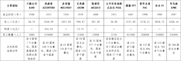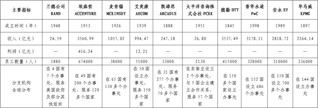 表2 世界一流咨詢企業(yè)2021年經(jīng)營(yíng)規(guī)模情況表