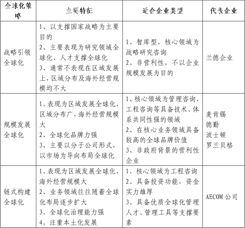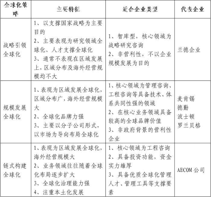 表3  咨詢企業(yè)三類(lèi)全球化策略