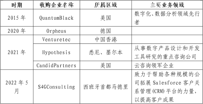表5  麥肯錫公司主要收購(gòu)企業(yè)