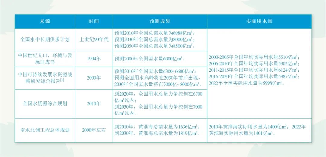 二、以往重大規(guī)劃及水利工程規(guī)劃設(shè)計(jì)的需水預(yù)測(cè)結(jié)果均明顯偏大