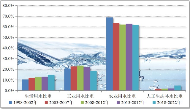 圖2 近25年全國(guó)每5年用水結(jié)構(gòu)變化示意圖