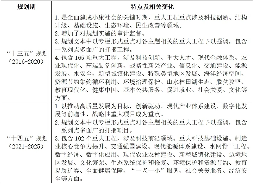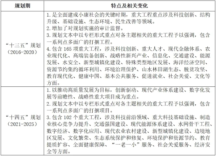 表4 “十三五”“十四五”規(guī)劃中的重大工程特點(diǎn)