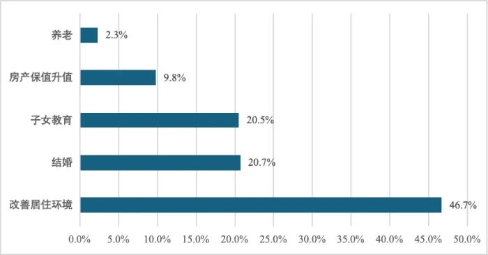 一是商品住房需求部分,在新房和二手房價格普遍下跌的趨勢下,青年購房需求出現(xiàn)分化。調(diào)查顯示,首先,部分青年群體受就業(yè)市場挑戰(zhàn)、婚育情況變化等因素影響,難以承受商品房價格,也避免承擔(dān)長期的房貸負(fù)擔(dān);其次,部分青年在擁有一定購房實力時,仍然選擇租房居住、持幣待購,規(guī)避房價下跌過程中家庭資產(chǎn)損失的風(fēng)險;再次,部分具有經(jīng)濟實力的青年群體開始關(guān)注居住環(huán)境的改善,《2023年青年置業(yè)報告》顯示,改善居住環(huán)境已經(jīng)成為青年置業(yè)的主要動力,如下圖1所示,46.7%的受訪青年為了改善居住環(huán)境而購房。同時,如下圖2所示,56.6%的受訪青年愿意購買三居室。因此,在商品房部分應(yīng)進一步關(guān)注青年群體分化的購房需求,繼續(xù)打造更加精準(zhǔn)的支持政策和供給產(chǎn)品。