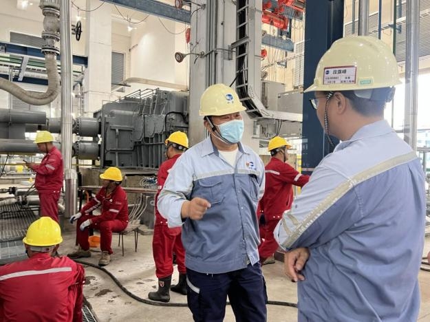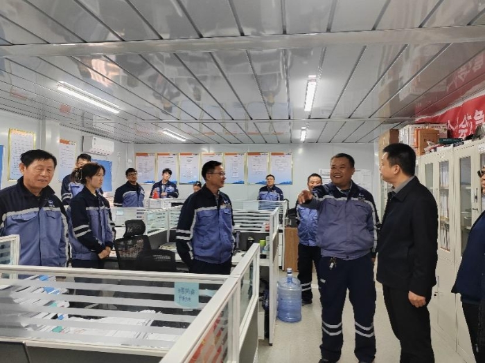 2024年4月29日,中咨工程公司黨委委員、副總經(jīng)理李仁坤(左二)到山東東明石化現(xiàn)場(chǎng)檢查指導(dǎo)工作