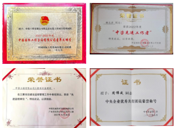 深耕而廣蓄,厚積而薄發(fā)。韓志彥團(tuán)隊(duì)始終秉持初心,砥礪前行,出色的項(xiàng)目執(zhí)行力和工作成果也得到了集團(tuán)公司、上級(jí)組織和業(yè)主單位的充分肯定。2023年2月,韓志彥被集團(tuán)公司黨委授予2022年度“中咨先進(jìn)工作者”稱號(hào);5月,團(tuán)隊(duì)成員周偉成被中央企業(yè)團(tuán)工委授予“中央企業(yè)優(yōu)秀共青團(tuán)員”榮譽(yù)稱號(hào);7月,韓志彥團(tuán)隊(duì)榮獲“中咨公司青年文明號(hào)(2021-2022年度)”。此外,團(tuán)隊(duì)及成員還被業(yè)主單位授予“質(zhì)量衛(wèi)士”2次、“優(yōu)秀監(jiān)理單位”2次、“先進(jìn)個(gè)人”7人次。