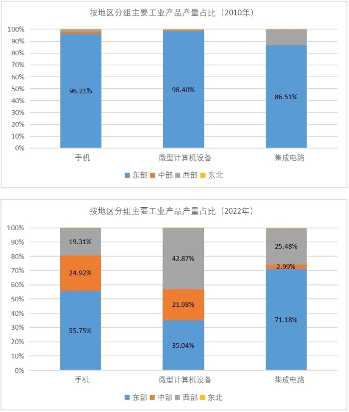 圖1 2010-2022年我國(guó)分區(qū)域電子信息類主要產(chǎn)品產(chǎn)量占比
