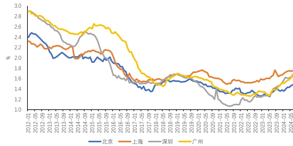 若要將全國去化周期降至18個月,預(yù)計需要資金超過5萬億元,此次中國人民銀行3000億元保障性住房再貸款預(yù)計帶動5000億元銀行存款,具有較強(qiáng)的信號作用。預(yù)計政府收儲將以小戶型存量新房為主,集中于高庫存且保障性住房缺口較大的城市,但目前政策存在三大堵點:第一,收儲要求地方政府的資金支持,但目前除了部分一二線城市具有加杠桿空間外,多數(shù)地方政府加杠桿能力有限;第二,部分城市成本收益不匹配導(dǎo)致項目推進(jìn)有難度,保障性住房再貸款政策利率1.75%,考慮商業(yè)銀行運營成本和房屋裝修成本預(yù)計要求收購成本在2.75%以上,這就對配租型保障性住房的租金回報率有一定要求,而2024年6月上海、深圳、廣州、北京的二手房租金回報率分別僅為1.75%、1.64%、1.68%、1.48%,租金無法覆蓋利息支出及運營維護(hù)成本,除非收購價格在6折以下;第三,保障性住房需求與商品房庫存之間存在錯位,2023年人口凈流入城市主要是廣州、東莞、成都、蘇州、佛山、武漢、杭州等一二線城市,這就意味著保障性住房缺口大的也是這些城市,而去庫存緊迫性高的是三四線城市。因此,本輪政府收儲去庫存的效果可能弱于上一輪棚改貨幣化政策。