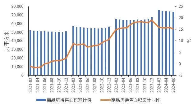 2024年上半年,房地產(chǎn)行業(yè)基本面仍處于下行階段,但得益于短期從中央到地方利好新政刺激,銷售面積、金額同比降幅略有收窄,新開工、竣工止跌企穩(wěn),6月市場開始出現(xiàn)“筑底”信號,但這不是拐點信號,市場仍處于下行階段。2024年1-6月,全國商品房銷售面積4.79億平米,同比下降19.0%;商品房銷售額4.71萬億元,同比下降25.0%;從6月單月數(shù)據(jù)來看,商品房銷售面積為1.13億平方米,環(huán)比上漲52.5%;商品房銷售額為1.15萬億元,環(huán)比上漲50.9%。截至2024年6月末,商品房待售面積73894萬平方米,同比增長15.2%,其中,住宅待售面積增長23.5%,庫存壓力嚴(yán)峻。1-6月,中指355城住宅土地成交面積和金額分別同比下降38.1%和44.3%;房屋新開工面積3.80億平方米,同比下降23.7%;房屋竣工面積2.65億平方米,同比下降21.8%。本輪房地產(chǎn)去庫存面臨更大壓力,去化周期2024年6月已達(dá)到23.8個月。房價深度調(diào)整,截至2024年6月連續(xù)26個月負(fù)增長,根據(jù)中原領(lǐng)先指數(shù)可知,目前一線城市二手房房價平均降幅達(dá)25%。國家金融監(jiān)管總局?jǐn)?shù)據(jù)顯示,今年5月份首套房貸平均利率3.45%,二套房貸平均利率3.9%,分別比上年同期下降0.55和1個百分點,達(dá)到2008年以來的最低值。