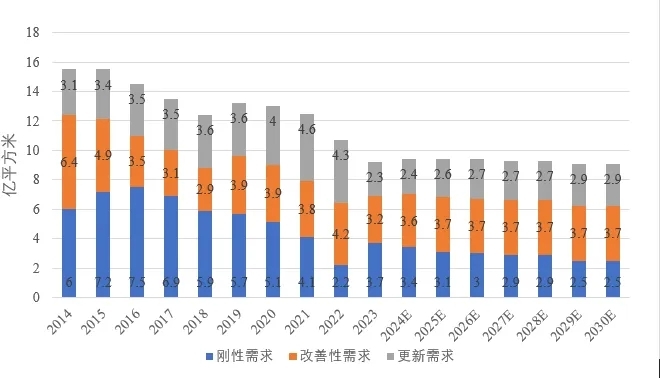 圖2  我國住房總需求及其構(gòu)成的預(yù)測