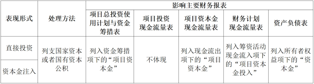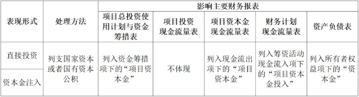 (1)政府直接投資。一般計入資產(chǎn)負債表中的“資本金”,并計入項目總投資使用計劃與資金籌措表中的“項目資本金”。