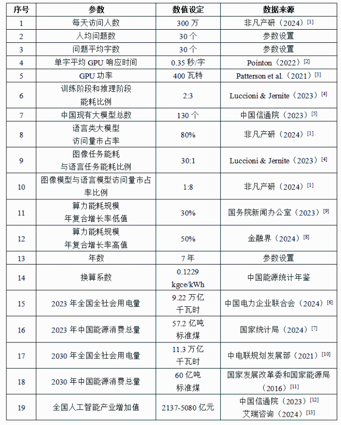 摘要:人工智能大模型技術(shù)引領(lǐng)的新興產(chǎn)業(yè)發(fā)展正成為全球新一輪科技革命和產(chǎn)業(yè)競(jìng)爭(zhēng)的新高地、新賽道。我國牢牢把握這一戰(zhàn)略機(jī)遇,推動(dòng)新一代人工智能模型成為新質(zhì)生產(chǎn)力的典型代表,實(shí)現(xiàn)全產(chǎn)業(yè)高質(zhì)量發(fā)展。然而,人工智能模型性能發(fā)展所依托的模型參數(shù)擴(kuò)張、訓(xùn)練次數(shù)升級(jí)以及伴隨著的使用頻率躍增,已然導(dǎo)致算力需求和能源消費(fèi)過快增長。在當(dāng)前嚴(yán)峻的節(jié)能形勢(shì)背景下,人工智能的能耗問題與節(jié)能工作之間的潛在矛盾備受關(guān)注。鑒于此,本文對(duì)人工智能的能耗影響及挑戰(zhàn)進(jìn)行了測(cè)算分析,認(rèn)為人工智能產(chǎn)業(yè)能耗的長期影響總體可控,但短期局部影響仍然突出,或與節(jié)能工作形成沖突,建議從強(qiáng)化產(chǎn)業(yè)發(fā)展要素保障、摸排產(chǎn)業(yè)發(fā)展情況、建立綠色低碳管理機(jī)制、深化“東數(shù)西算”格局四個(gè)方面,推動(dòng)人工智能產(chǎn)業(yè)綠色低碳發(fā)展。 一、研究背景 以大模型為代表的人工智能技術(shù)和產(chǎn)業(yè)已成為當(dāng)今經(jīng)濟(jì)社會(huì)發(fā)展的重要支撐,發(fā)展新一代人工智能大模型是加快形成新質(zhì)生產(chǎn)力、培育經(jīng)濟(jì)發(fā)展新動(dòng)能、贏得全球科技競(jìng)爭(zhēng)主動(dòng)權(quán)的戰(zhàn)略抓手。自2020年起,人工智能由傳統(tǒng)的“判別式小模型”轉(zhuǎn)向更為先進(jìn)的“生成式大模型”,代表性功能也從人臉識(shí)別、目標(biāo)檢測(cè)、文本分類升級(jí)到如今的文本生成、圖像生成、語音生成、視頻生成等。 人工智能大模型計(jì)算系統(tǒng)通常由深度神經(jīng)網(wǎng)絡(luò)構(gòu)建而成,具有萬億量級(jí)參數(shù)規(guī)模和復(fù)雜計(jì)算結(jié)構(gòu),能夠根據(jù)已學(xué)習(xí)的內(nèi)容進(jìn)行基礎(chǔ)性地判斷以及創(chuàng)造性地生成新內(nèi)容。其中,語言類和圖像類任務(wù)大模型應(yīng)用場(chǎng)景較為廣泛,正成為當(dāng)前人工智能技術(shù)研究和應(yīng)用的熱點(diǎn)方向。具體而言,語言類任務(wù)大模型主要用于理解和生成自然語言文本,處理諸如文本分類、問答系統(tǒng)、文字生成等文字任務(wù),代表性模型有OpenAI公司發(fā)布的ChatGPT、百度公司發(fā)布的文心一言等。圖像類任務(wù)大模型則主要用于處理和理解圖像內(nèi)容,執(zhí)行諸如圖像分類、目標(biāo)檢測(cè)、圖像生成等視覺任務(wù),代表性模型包括OpenAI公司的DALL-E、智譜人工智能研究院的CogVLM等。 隨著人工智能技術(shù)的快速發(fā)展,其背后的算力支撐和電力供應(yīng)變得愈發(fā)關(guān)鍵。算力,即單位時(shí)間內(nèi)處理數(shù)據(jù)或信息的能力(FLOPS),主要以計(jì)算機(jī)設(shè)備、數(shù)據(jù)中心、智算中心等算力基礎(chǔ)設(shè)施作為運(yùn)行載體,而電力則為其提供必要的能源支撐,以確保算力的穩(wěn)定高效運(yùn)行。由于人工智能技術(shù)的快速發(fā)展高度依賴于模型參數(shù)規(guī)模擴(kuò)大、訓(xùn)練次數(shù)升級(jí)以及伴隨著的使用頻率躍增,算力需求和能源消耗呈現(xiàn)快速增長態(tài)勢(shì),也由此引發(fā)了一系列關(guān)注。然而已有研究多聚焦于能耗總量分析,鮮有深入探討其時(shí)空分布特點(diǎn)以及結(jié)合節(jié)能工作形勢(shì)全面分析能耗挑戰(zhàn)。為此,本文以語言類和圖像類大模型兩類人工智能大模型為代表對(duì)人工智能能耗進(jìn)行了測(cè)算,并結(jié)合時(shí)空分布以及節(jié)能工作形勢(shì)分析了人工智能能耗帶來的挑戰(zhàn),最后從要素保障、產(chǎn)業(yè)摸底、管理機(jī)制、戰(zhàn)略格局等維度提出了政策建議,以期為我國人工智能產(chǎn)業(yè)綠色低碳發(fā)展提供有力支撐。 二、研究方法與數(shù)據(jù) 本研究基于人工智能領(lǐng)域相關(guān)政策文件、研究報(bào)告、學(xué)術(shù)文獻(xiàn)等最新信息,構(gòu)建了以語言類大模型和圖像類大模型能耗情況為代表的人工智能大模型能耗計(jì)算方法,并對(duì)我國人工智能發(fā)展的能耗影響進(jìn)行了測(cè)算分析。 (一)大模型總能耗現(xiàn)狀測(cè)算 當(dāng)前中國人工智能大模型總能耗主要由語言類大模型總能耗和圖像類大模型總能耗構(gòu)成(受限于數(shù)據(jù)可得性,以2023年大模型發(fā)展情況對(duì)其能耗水平現(xiàn)狀進(jìn)行測(cè)算),如式1所示: (二)數(shù)據(jù)來源 計(jì)算過程的參數(shù)設(shè)置與數(shù)據(jù)來源如下表所示。在人工智能大模型能耗現(xiàn)狀計(jì)算方面,主要參數(shù)包括每天訪問人數(shù)、人均問題數(shù)、問題平均字?jǐn)?shù)等。其中,每天訪問人數(shù)、語言類大模型訪問量市占率、圖像模型與語言模型訪問量市占率比例均來自非凡產(chǎn)研[1]的2024年度報(bào)告。單字平均GPU響應(yīng)時(shí)間數(shù)值來自Pointon(2022)[2],即0.35秒/字。根據(jù)Patterson等人[3]的研究結(jié)果,GPU功率為400瓦特?;贚uccioni & Jernite(2023)[4],語言類大模型訓(xùn)練和推斷階段的能耗比例為2:3,圖像任務(wù)能耗與語言任務(wù)能耗比例為30:1。中國現(xiàn)有大模型總數(s