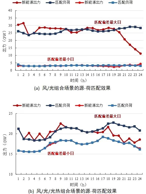 圖5 不同場(chǎng)景下源-荷匹配效果