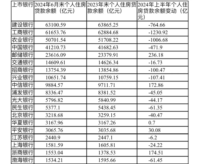 表1 2024年上半年大中型銀行個人住房貸款余額變動情況