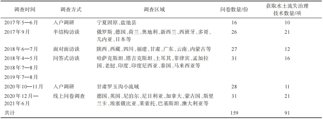 表1 問卷調(diào)查及水土流失治理技術(shù)獲取過程