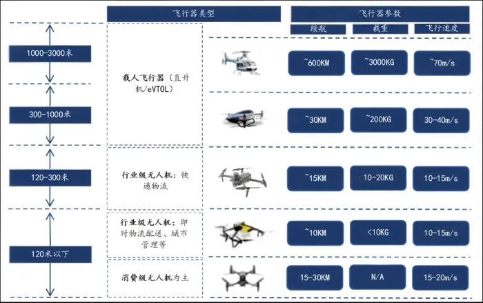 圖1 低空飛行器類型及空域區(qū)間示意圖